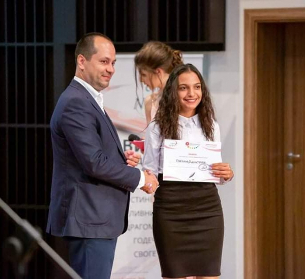 Евелина Димитрова е ученичка в 12. клас в СУ „Христо Ботев“, село Галиче, Врачанско. Родена е на 19 септември, 2001 г. и е от ромски произход. Тя смята, че би могла с примера си да преобърне представата за ромите в България, като покаже, че не е изключение, за да разбие стереотипите на цялата общност. Има за цел да насърчи всички млади хора към любознателност, положителна промяна и борбен дух, защото Евелина вярва, че личният пример е най-важен. Убедена е, че човек сам гради бъдещето си.