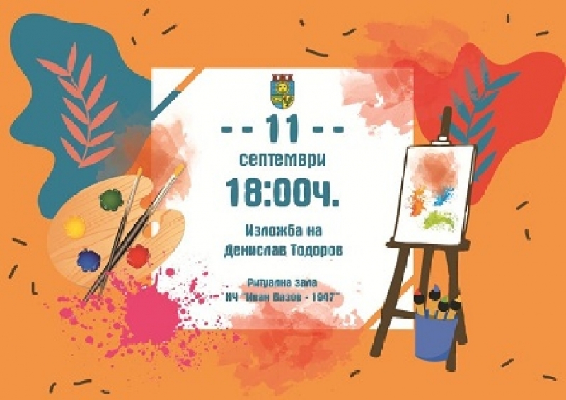 На 11 септември от 18.00 ч. в ритуалната зала на НЧ "Иван Вазов" ще бъде открита изложбата на художника Денислав Тодоров.