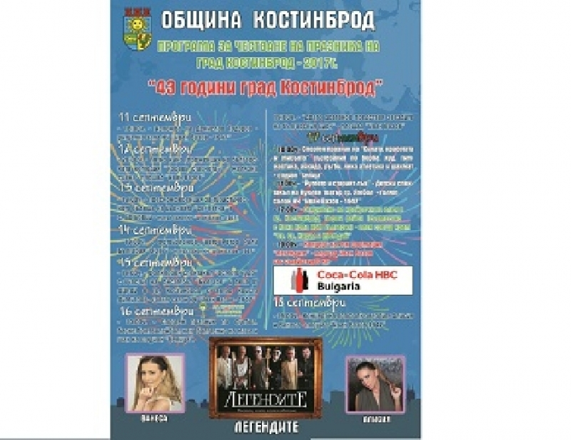 В понеделник започват събитията от едноседмичната програма, с които Община Костинброд ще отбележи своя празник - деня на Св. мъченици Вяра, Надежда, Любов и майка им София.