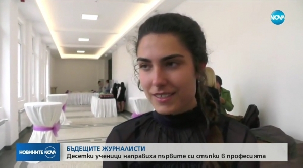 „В „Работилница за репортери“ имах шанс за обратна връзка от наистина големи журналисти“, каза големият победител в „Работилница за репортери 2019 - Пътят към дома“ Елина Алипиева, ученичка в ПЕГ „Йоан Екзарх”, гр. Враца за предаването „Новините на NOVA“ на медийния партньор на проекта Нова Телевизия.