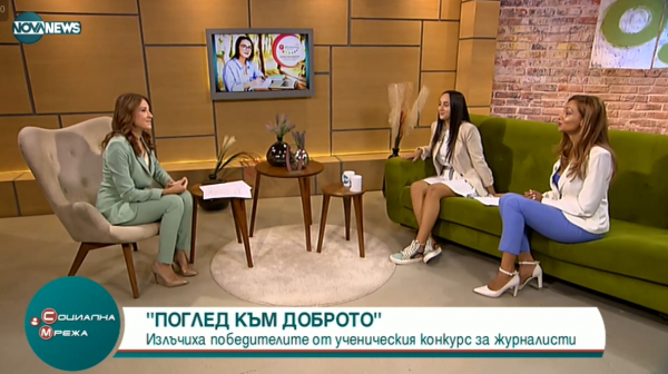Емили Караколева, победител в шестото издание на ученическия конкурс-обучение „Работилница за репортери 2021 - Поглед към доброто“ и Десислава Василева, създател на проекта, гостуваха в NOVA TV, където разказаха повече за приключението "Работилница за репортери".