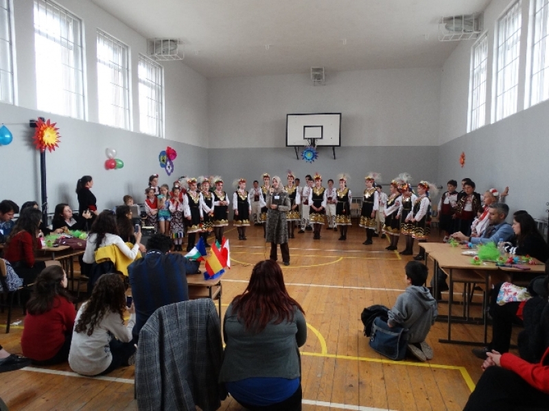 Незабравимо остана посещението на партньорите в СОУ „Летец Христо Топракчиев“ през месец март 2015 година, което премина при отлично подготвена и изпълнена програма. Пред партньорите в проекта бе представен град Божурище и  училището. Децата посетиха учебни часове и се запознаха с учебната работа в СОУ „Летец Христо Топракчиев“. Бяха организирани две фото екскурзии до град София и Пловдив.  По време на дейностите по проекта децата създадоха видео филми с кадри от посетените места в България, състезаваха се в решаването на тест, съдържащ въпроси, свързани с проекта и Европейския съюз, представиха изработените презентации от календара на проекта. Децата от хореографските паралелки накараха гостите да почувстват магията на българския фолклор, научиха ги да танцуват  Право тракийско хоро и да пеят популярната народна песен „Дилмано, Дилберо“. Истински атрактивно бе как испанците, турците, поляците и италианците се забавляват, докато се учат да правят мартеници и да украсяват великденски яйца.