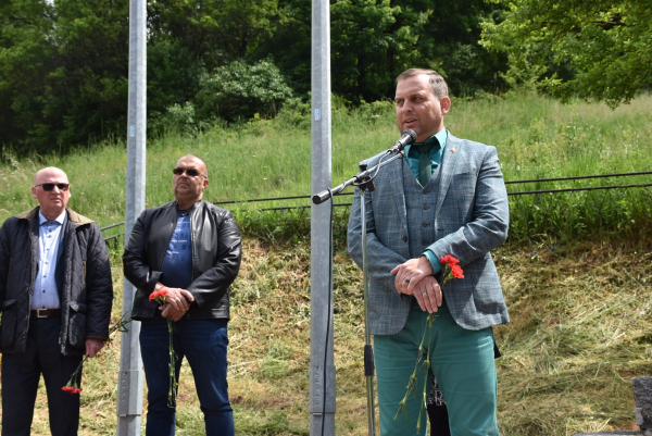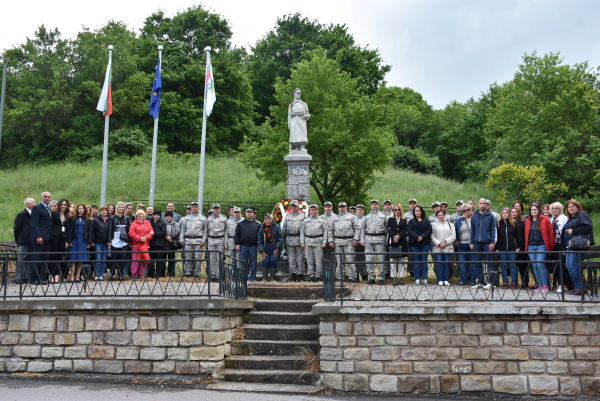 Пред паметника на загиналите във войните в Бучин проход