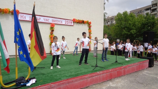 Присъстващите поздрави и г-н Каснер, който сподели изключителния си опит като преподавател на Випуск 2019 и разказа за множеството приятни емоции, изпитани по време на работата му с учениците от гимназията. Каснер не скри своята гордост от напредъка на учениците и от отличната подготовка, която са доказали и на изпита за придобиване на Немска езикова диплома. Той завърши обръщението си с изненада - съобщи, че дванадесетокласничката Анелия Антова печели пълна стипендия за следване в Германия на Немската служба за академичен обмен DAAD - една рядка и много ценна стипендия, която се присъжда само на 120 ученици от цял свят.