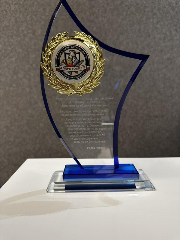 Зам.-кметът на община Костинброд – Александър Ненов с награда от Националната асоциация на доброволците
