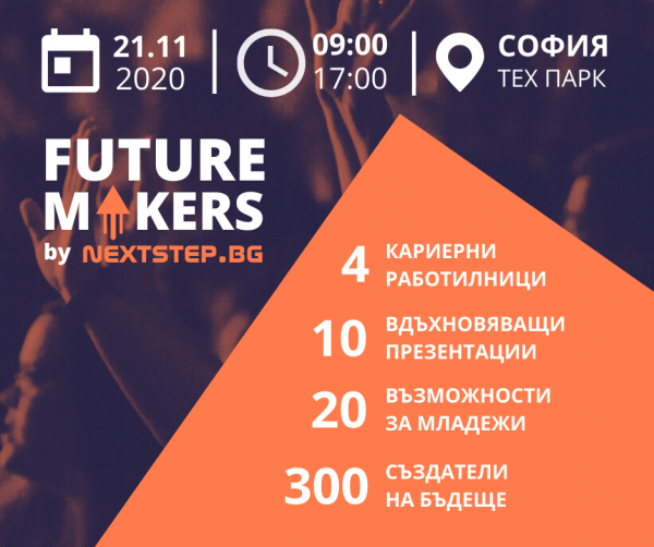 Те са млади, амбициозни, целеустремени и решени да направят света по-добро място със знанията, труда и личния си пример. Освен това са готови да споделят с вас опита си и да ви помогнат да изградите кариера, която ще ви направи не само успешни професионалисти, но и щастливи хора. Те са българските Future Makers и на 21 ноември ще излязат на сцената на Иновационен форум „Джон Атанасов“ в София Тех Парк, за да разкажат за възможностите и предизвикателствата, благодарение на които са направили първите крачки по пътя на своята успешна реализация.