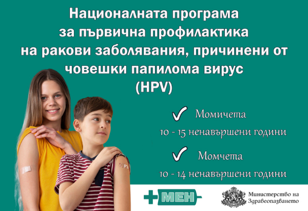 През 2025 г. по Националната програма за първична профилактика на ракови заболявания, причинени от човешки папилома вирус (HPV)