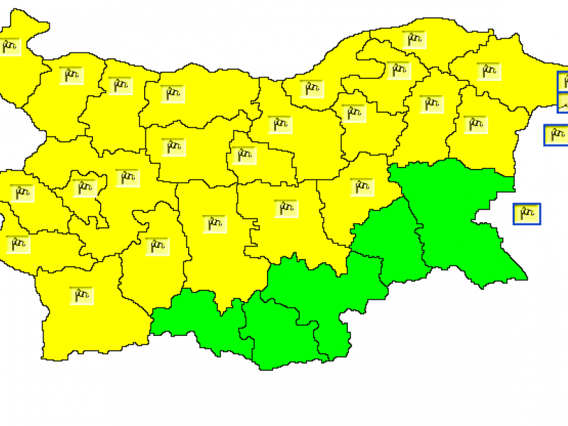 Поради динамиката на явленията, за днес е обявен жълт предупредителен код за опасно време заради силния вятър. Той е в сила за всички области в страната, с изключение на Смолян, Кърджали, Хасково, Ямбол и Бургас.