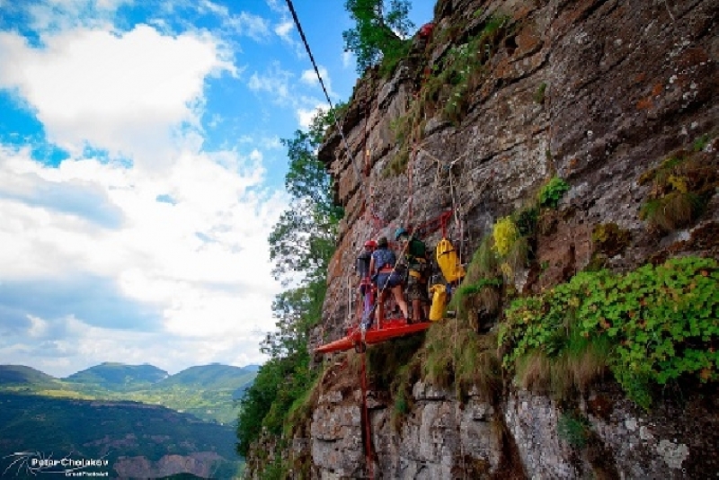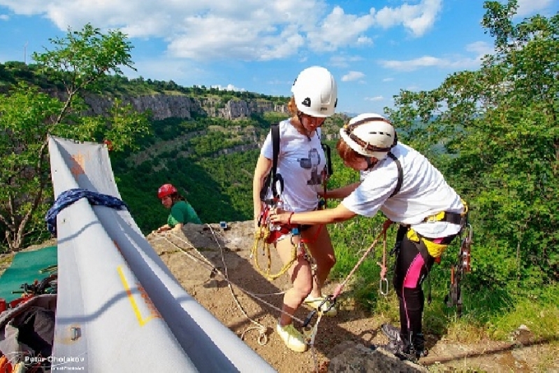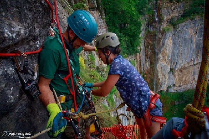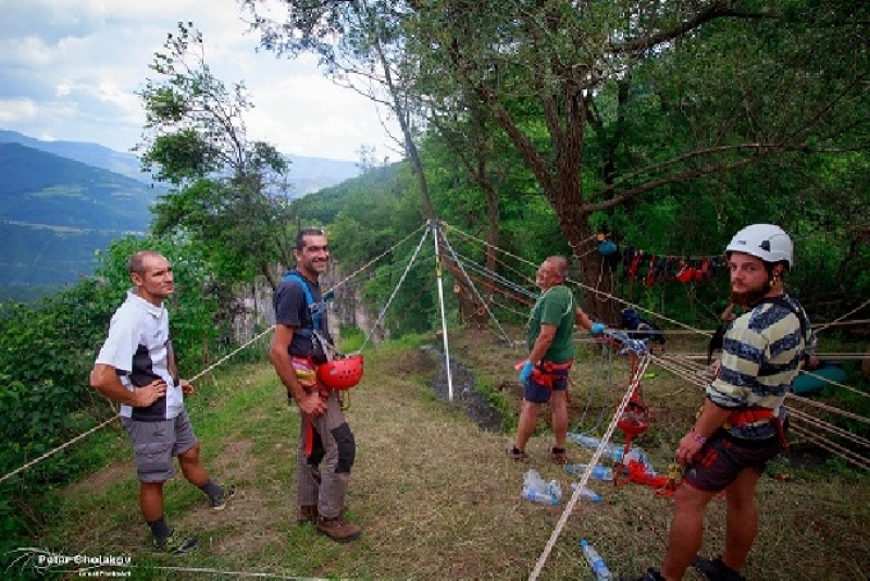При самата организация на събитието имаше доста казуси за решаване – първо поканих геодезист да заснеме с тотална станция водопада, защото няма никакъв шанс да прецениш на око ъглите и дължините на трасето. Трябваше да предвидим варианти за спасителна акция от всяка точка на трасето, тъй като всичко може да се обърка дори и в най-обезопасените и обмислени неща. Повикахме и член от Българското дружество за защита на птиците да огледа района – дали няма да застрашим някое рядко пиле. Все пак щяхме да вдигнем известен шум. (Смее се.) След това започнахме същинската работа – монтирахме и проверихме тролея. Също така обезопасихме мястото като свалихме огромни камъни, които така или иначе щяха да паднат. Но каквато и трудност да изникваше, я решавахме на момента – бяхме поели ангажимент пред общината, събитието вече беше обявено, следователно имахме ангажимент и към хората. Имахме една възможност за изпълнение – перфектно! За щастие, природата беше с нас и се случиха нещата.