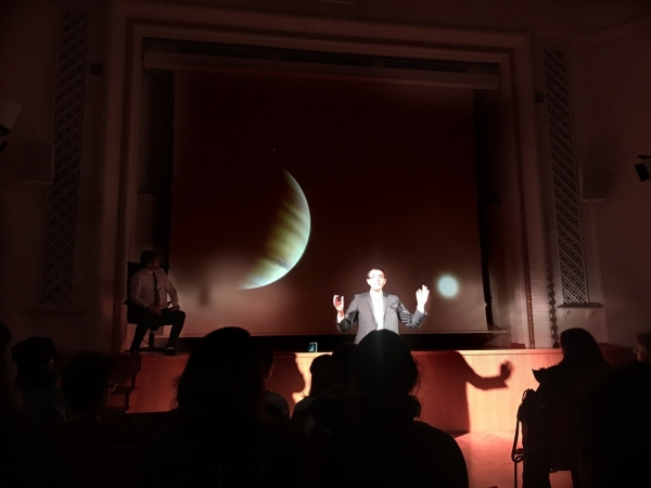Спектакълът завърши с 30-минутна дискусия, като публиката не пропусна възможността на свой ред да обсипе водещите Димитър Узунов и Владимир Божилов с интригуващи въпроси: Каква е следващата стъпка на човечеството за колонизиране на Космоса? Възможно ли е наистина след 50 години да се осъществят първите полети до Марс? Съществуват ли паралелни вселени? Сами ли сме в необятното космическо пространство?