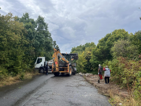 С помощ от БКС за едрогабаритния отпадък, беше изчистен над 3 км второкласния път, обход на Ломско шосе.