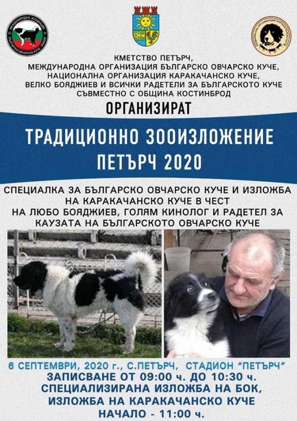 За поредна година костинбродското село Петърч ще бъде домакин на „Зоо изложение Петърч 2020“. Събитието ще се състои на 6 септември /неделя/ от 11:00 ч., на стадион „Петърч“. Организатори са Кметство Петърч, Международна организация Българско Овчарско куче, Национална организация Каракачанско куче, Велко Бояджиев и община Костинброд.