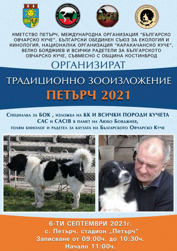 За поредна година костинбродското село Петърч ще бъде домакин на зоо изложение „Петърч 2021“. Събитието ще се състои на 6 септември /неделя/ от 11:00 ч., на стадион „Петърч“.