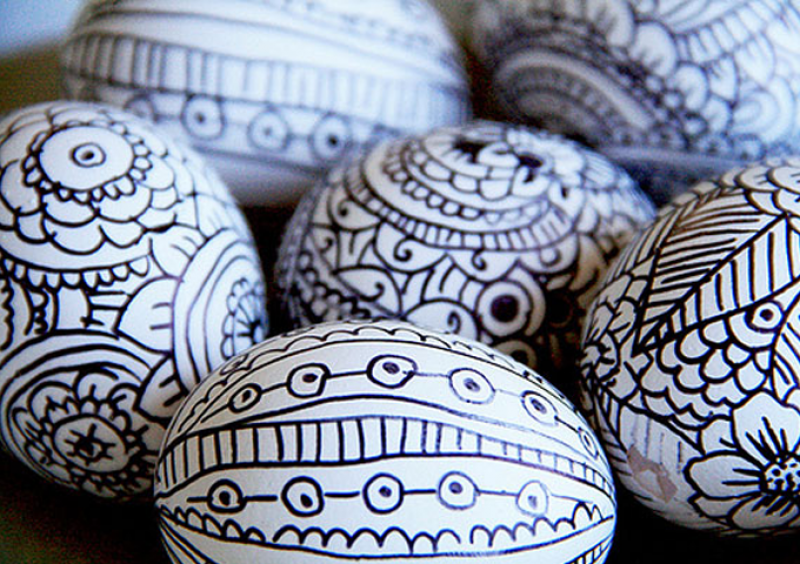 1. Кой е казал, че яйцата трябва да са цветни? Защо не експериментирате и не грабнете един маркер? Не е нужно да сте добри художници, просто рисувайте различни форми и линии и се забавлявайте!