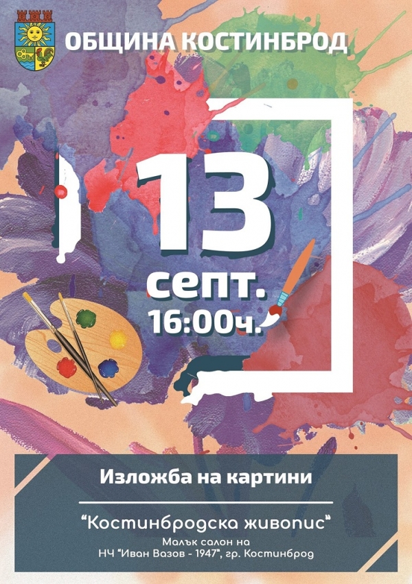 Костинбродски художници ще представят днес свои творби пред местната публика. Любителите на изобразителното изкуство ще могат да се насладят на над 30 платна. Те ще бъдат изложени в 16:00 часа днес в малкия салон на НЧ “Иван Вазов-1947″.