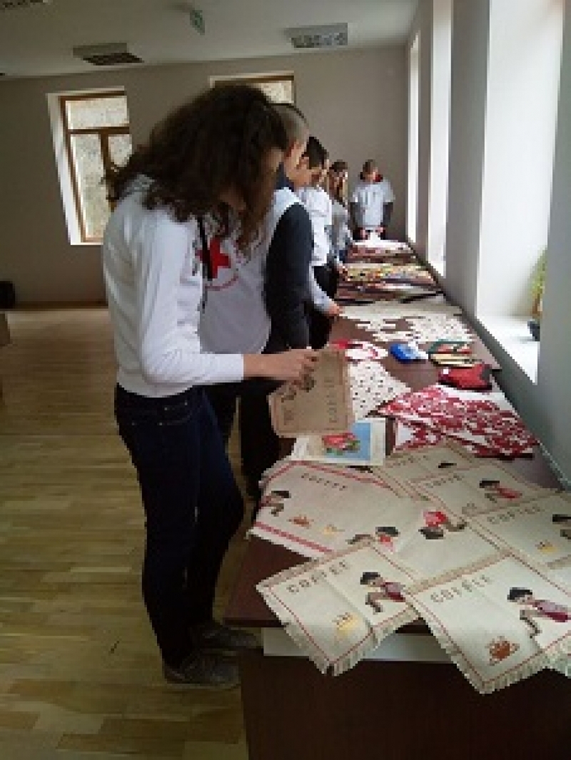 Г-жа Петя Борисова от читалището запозна учениците с целта на изложбата, която е да покаже от една страна уменията на годечанки в обичайната в миналото дейност по създаване на дрехи, карета, кърпи и др., с помощта на различните видове плетки и техники на шиене. По повод празника и с оглед на запазването и предаването на тези умения и форма на приложно изкуство, тя призова младите момичета да се интересуват и да опазват уникалните умения на техните майки и баби в работата с прежди и платове. За илюстрация на идеята тя попита момчетата дали могат да боравят с чук и различни инструменти, и получи положителен отговор.Когато попита момичетата, дали могат да шият, отговорът не беше толкова сигурен и категоричен. С това тя показа, че мъжете предават своите знания и същотото трябва да правят и жените.