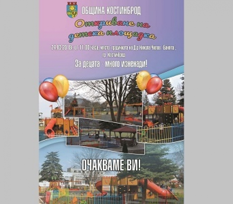 На 24 март Община Костинброд ще открие официално новоизградената детска площадка в градинката „Д-р Никола Чилов“ (Банята).