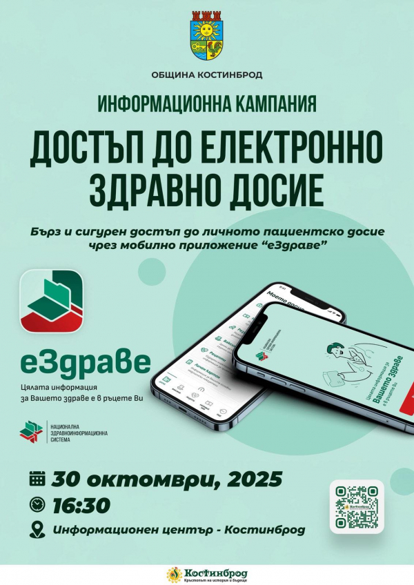 Национална здравноосигурителна каса организира разяснителна среща под надслов „Профилактиката е сила, а информираността – защита!“, която ще се проведе в Информационния център на община Костинброд на 30 октомври, от 16:30 ч. Срещата е предназначена за всички жители на община Костинброд и околностите – и за младите, и за по-възрастните граждани.