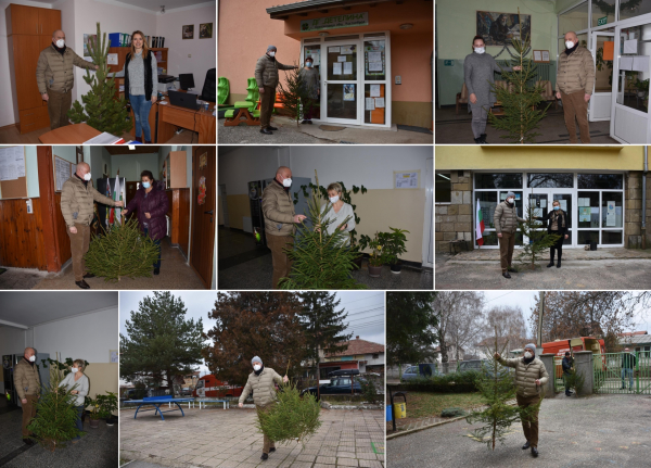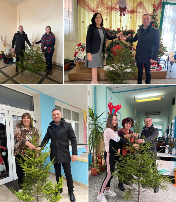 Заместник-кметът ненов Александър Ненов зарадва с елха ДГ „Радост”, Втори район, ДГ „Пролет“, Първи район, СУ „Д-р Петър Берон” и Първо ОУ „Васил Левски“.