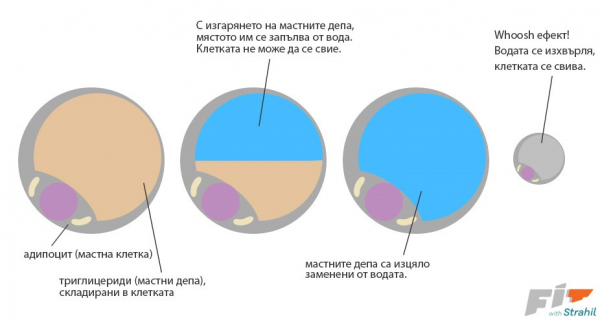 Задържане на вода на мястото на изгорените мазнини, която след известно време рязко се изхвърля от организма, в рамките на ден.