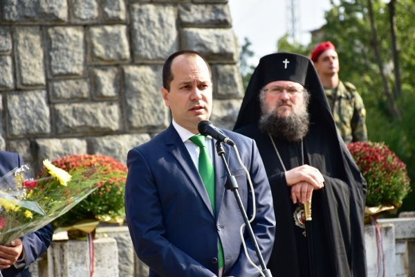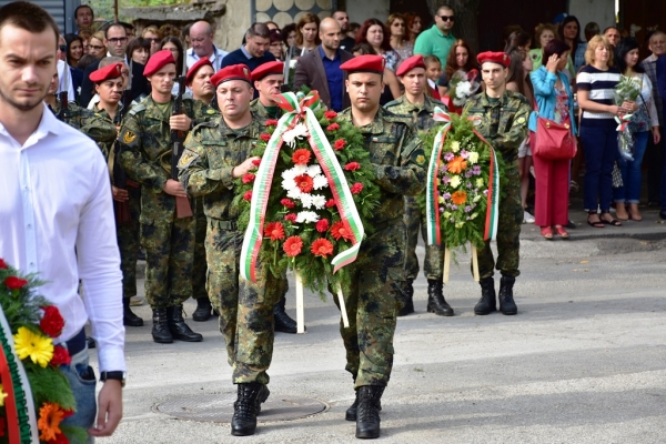 Официалната церемония по случай 134-та годишнина от Съединението на Княжество България с Източна Румелия се проведе пред паметника на загиналите във войните за национално обединение, до гаровия площад в града /Лъвчето/.
