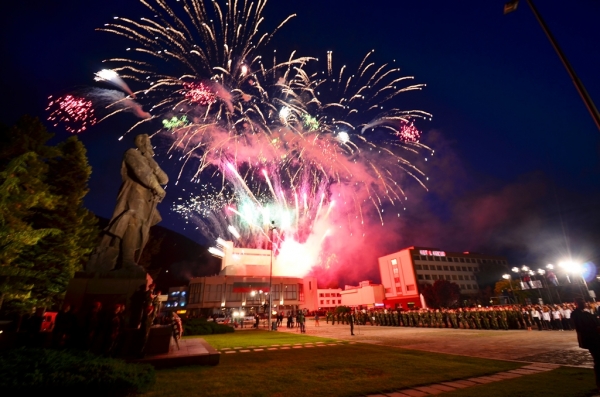 В края на церемонията, под звуците на музика, небето над града бе озарено от внушителна заря.
