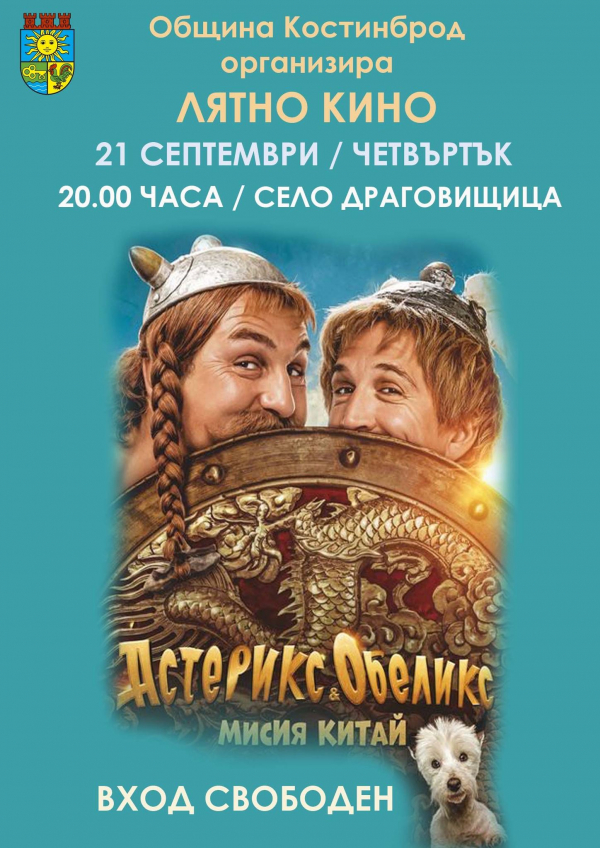 Кино под звездите ще зарадва малки и големи жители на костинбродското село Драговищица. На 21 септември /четвъртък/, от 20.00 ч., на площада в Драговищица ще бъде прожектирана забавната лента „Астерикс и Обеликс: Мисия Китай“. Входът за събитието е свободен.
