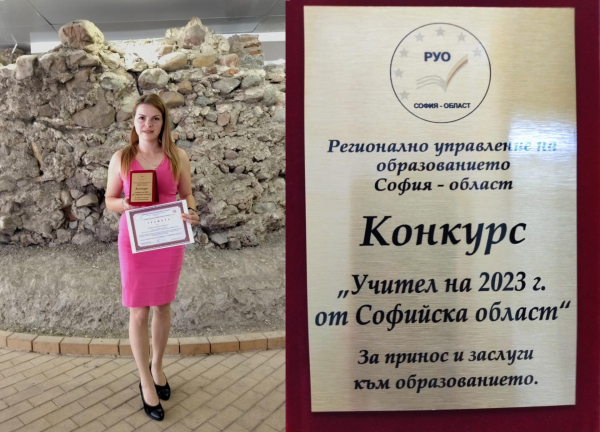 Сред отличените учители е и класния ръководител на 4 клас от Първо ОУ „Васил Левски“ – Даниела Гаврилова, която заслужено получи награда от РУО София-област за „Млад учител на 2023 година от София област“, за доказан професионализъм, креативност при прилагането на нови модерни методи на обучение и принос в развитието на образователното дело в Софийска област през 2022-2023 година.