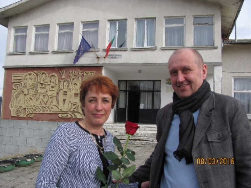 Д-р Атанас Тенев - председател на общинския съвет и Боби Бачев - секретар на общината, подариха рози на всички дами от общинска администрация и кметовете на населени места на територията на община Костинброд.