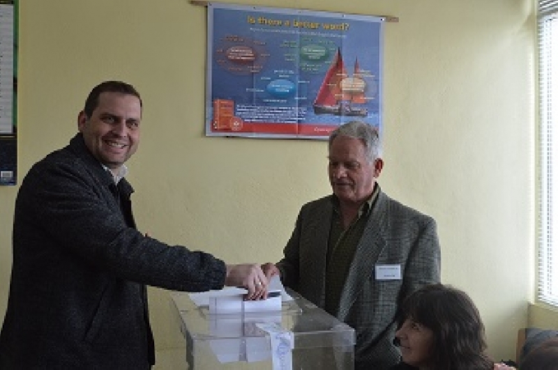 Градоначалникът на Костинброд упражни правото си на вот тази сутрин, точно в 11:01 часа в секция № 23 26 00009 в СУ "Д-р Петър Берон".