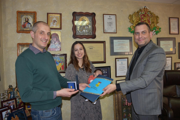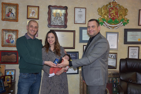 Кметът на община Костинброд посрещна в кабинета си родителите на първото родено дете за 2022 г.