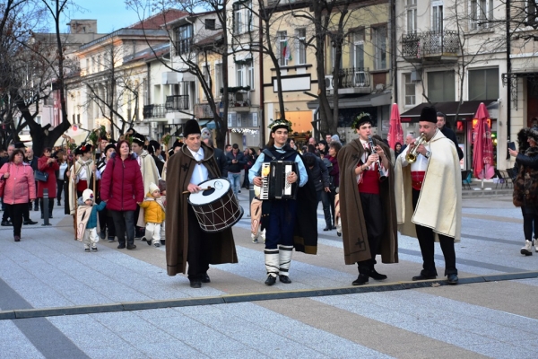 В пъстрата колона, водена от народен оркестър, се включиха малките коледари от детска ясла №5, от детските градини „Единство Творчество Красота“, „Знаме на мира“, „Звънче“, „Щастливо детство“, „Зора“, „Детска Вселена“, както и възпитаници от училищата „Васил Кънчов“, „Козма Тричков“, „Отец Паисий“ и от селата Паволче и Челопек.