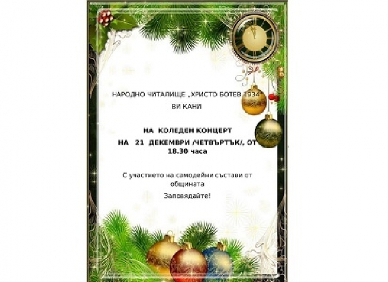 Коледен концерт ще има в НЧ „Христо Ботев 1934“