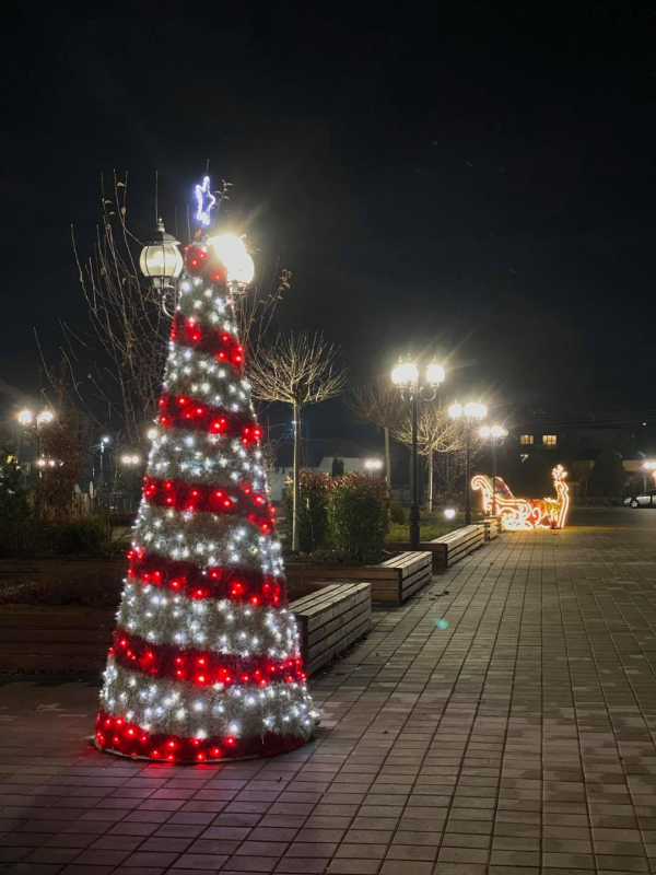 Освен дръвчето пред общинска администрация в светлини блесна и площад „Иван Вазов”. Там се намират двуметрова елха и еленче с шейната на Дядо Коледа.