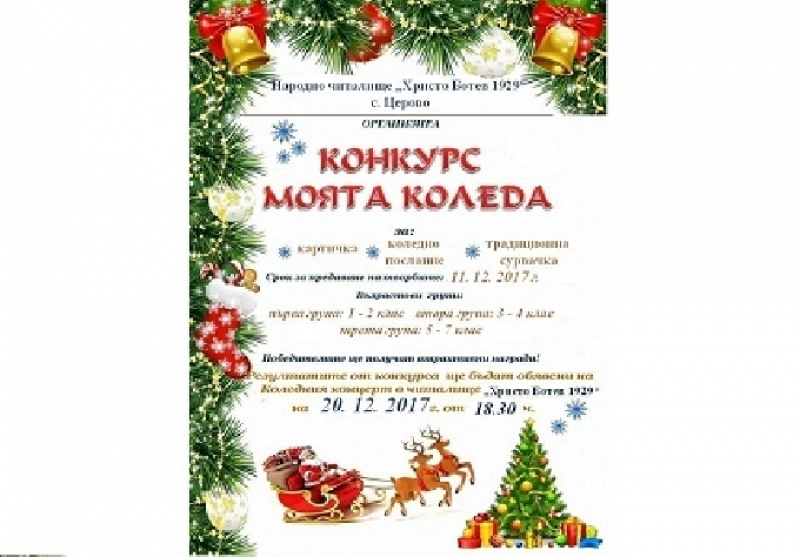 Конкурс „Моята Коледа“ за деца от първи до седми клас организира НЧ „Христо Ботев-1929“ – с. Церово.