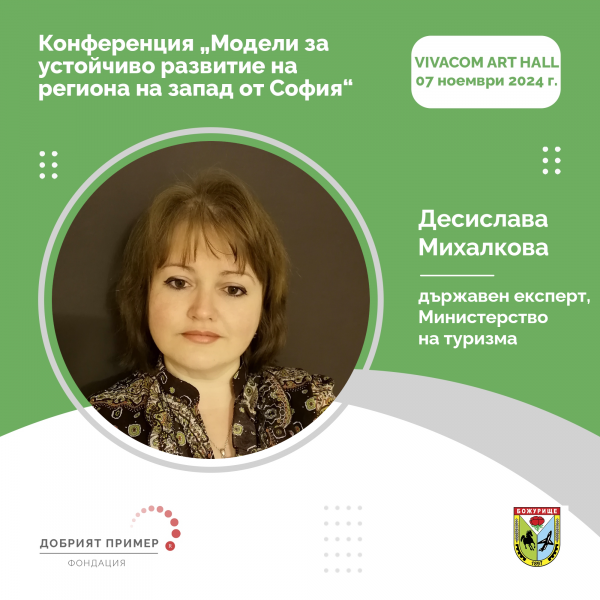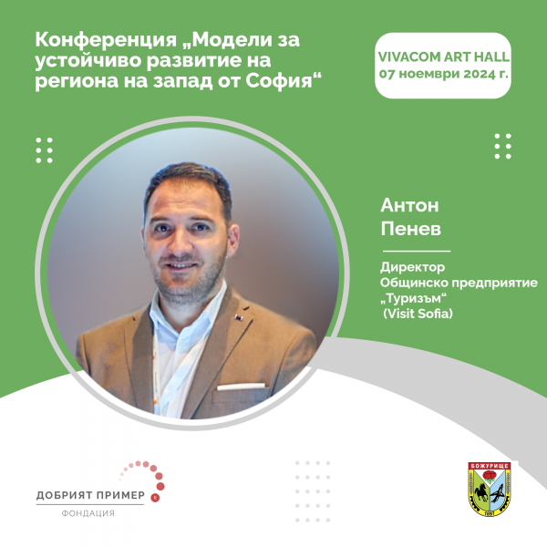 Конференцията „Модели за устойчиво развитие на региона на запад от София“ ще събере мненията на водещи експерти, представители на местната власт, институции и неправителствени организации. Тя ще бъде своеобразна платформа за обсъждане на стратегии и добри практики, обмяна на опит и очертаване на перспективи и възможности за развитие на региона и подобряване на икономическата, социалната и екологичната му устойчивост.