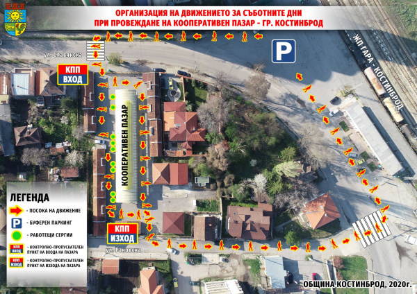 Община Костинброд Ви предоставя схема за организацията на движението за съботните дни при провеждането на Кооперативен пазар – гр. Костинброд.