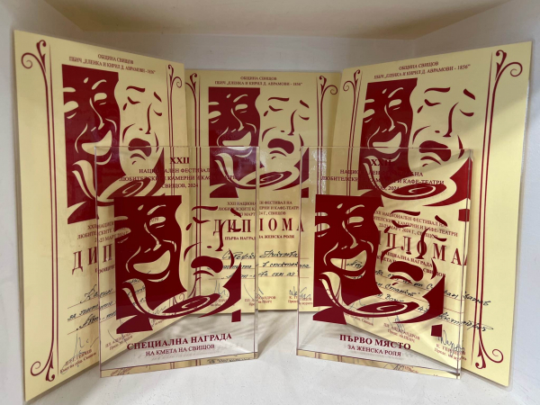 След пет годишно отсъствие от този престижен театрален форум, трупата отново се представи блестящо. Седефка Николова грабна първата награда за женска роля, Калин Божилов бе отличен с поощрителна награда за мъжка роля, а самият спектакъл бе удостоен със специалната награда на кмета на Община Свищов.