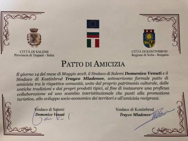 Кметът на община Костинброд и кметът на община Салеми, провинция Трапани – Италия, подписаха първоначално намерение за споразумение за дългосрочно сътрудничество и побратимяване.