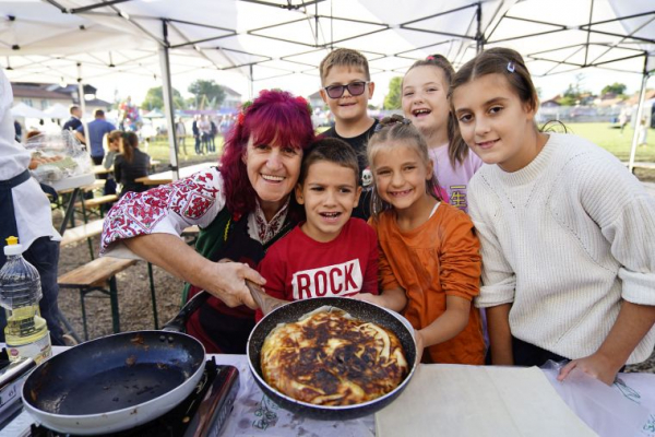 На щанда на пътуващия кулинарен фестивал – “Гозбата на България“, специално за 50-годишнината на Костинброд, баба Дешка, заедно с най-малките местни готвачи, приготвиха обичаната от всички – нейна рецепта за баница на тиган.