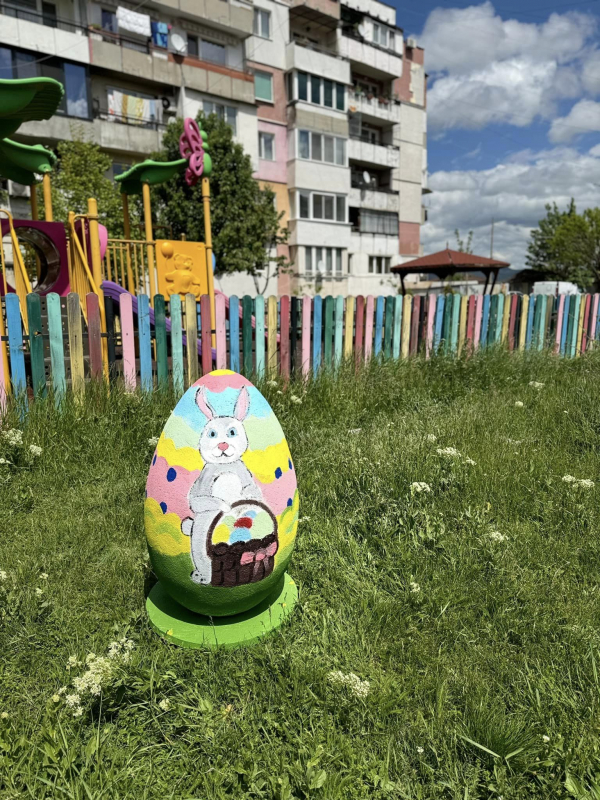 Яйце се постави в градинката на кв. Маслово, нарисувано за всички жители и гости на община Костинброд от:
