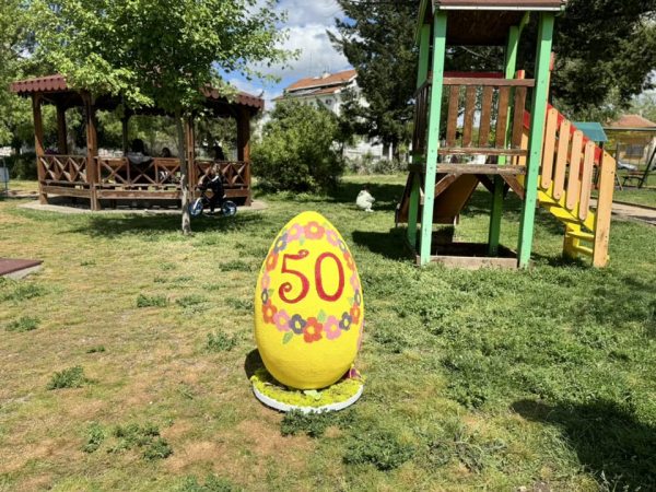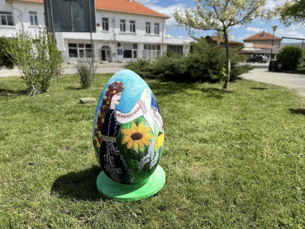 Яйце се постави в градинката на центъра в село Голяновци, нарисувано за всички жители и гости на община Костинброд от: