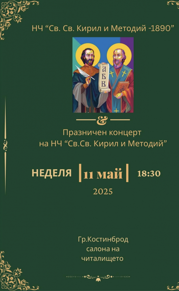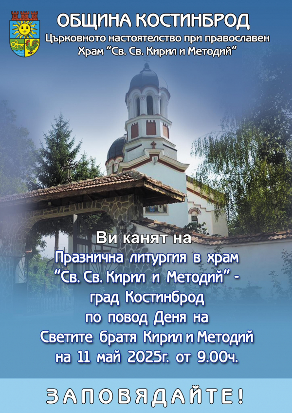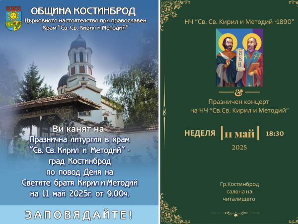 Община Костинброд приканва всички да се включат в честванията и да отдадат заслужена почит на делото на Светите братя, които остават символ на духовност, култура и просвета.