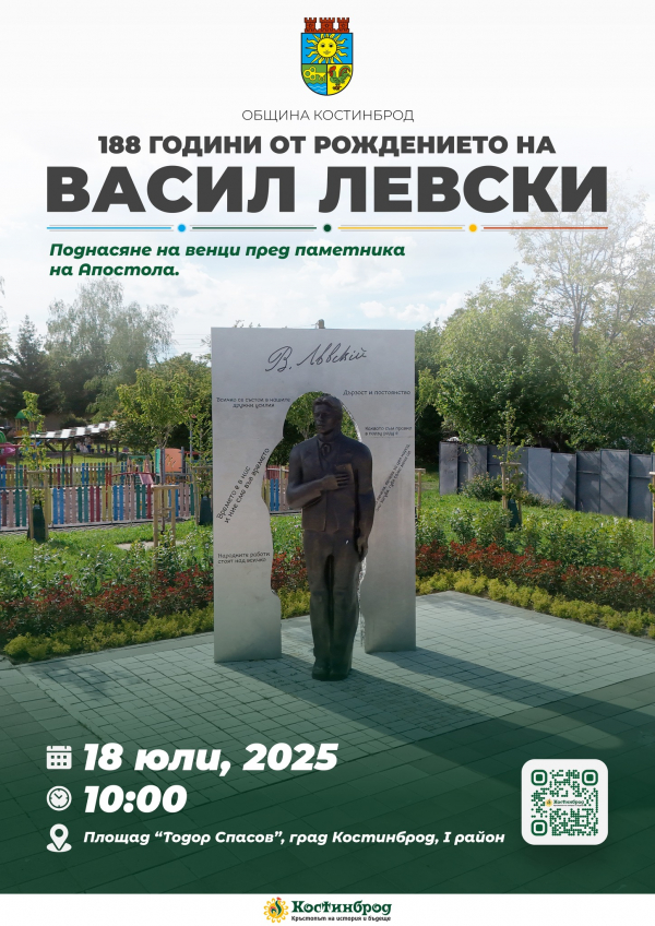 С поднасяне на венци пред паметника на Апостола, Община Костинброд ще отдаде почит на делото и саможертвата на една от най-великите личности в българската история. Всички жители и гости на общината са поканени да се присъединят към събитието и да засвидетелстват уважението си към Васил Левски – символ на свободата, родолюбието и националното достойнство.