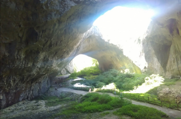 Мина около половин час в очакване на следващата прелестна картина - Деветашката пещера. И тя, както и водопадите не се виждаше веднага. Автобусът паркира на паркинга, а пред нас се откри дълъг мост. Когато тръгнахме по него сякаш минавахме от една реалност в друга. Към края на моста се виждаше входа на пещерата. Толкова величествен и висок. Сякаш влизахме в дома на някакъв великан или митично същество, а не в нещо създадено от майката природа. Още на входа обитателите на пещерата ни приветстваха с радостното „Добре дошли“. Въпреки че имаше много хора това не пречеше на жабите да издават звуци и да се показват от време на време.