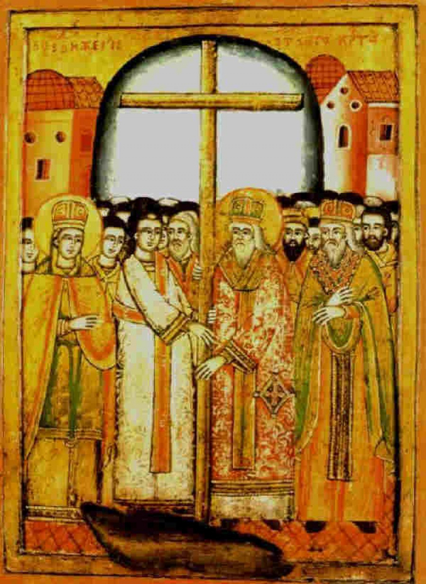 Според църковното предание света Елена, майката на император Константин Велики, била ревностна християнка. Тя се отправила към светите места в Палестина, за да потърси гроба Господен. Два века по-рано той бил затрупан от гонителите на християните. Усилията ѝ се увенчали с успех. Намерили пещерата в която бил погребан Христос. Намерили и три кръста. Кой от тях е Христовият разбрали, като докоснали до него наскоро починал човек и той възкръснал. Частица от този животворящ кръст Елена изпраща на сина си в Константинопол, а самият кръст полага в главната Йерусалимска църква. След време над пещерата на гроба Господен построили храм, който съществува и до днес. Той е осветен тържествено на 14 септември 335 г.