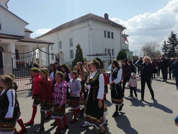 В с. Драговищица, децата от МШ „Иркапей" към НЧ „Георги С. Раковски-1928“, преминаха през селото в носии на лазарки и с песни благословиха домовете на своите съселяни по повод празника.
