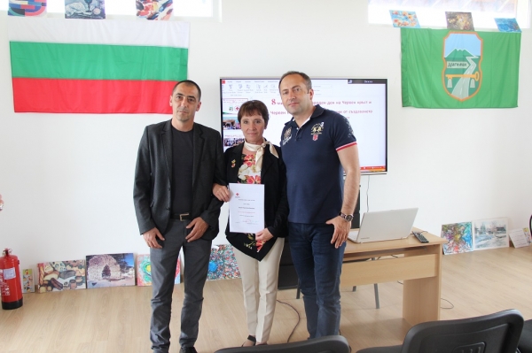 Подчертавайки значимостта, ползата и удовлетворението, което носи доброволческата дейност към БЧК, г-жа Банкова представи филма „Историята на една идея“ - идеята за създаването на международното движение на Червен кръст и Червен полумесец. Пред гостите бе представена и презентация, която показа част кампаниите на БЧК-Драгоман и БМЧК-Драгоман, съвместната работа и забележително активната и мащабна подкрепа на местната власт.