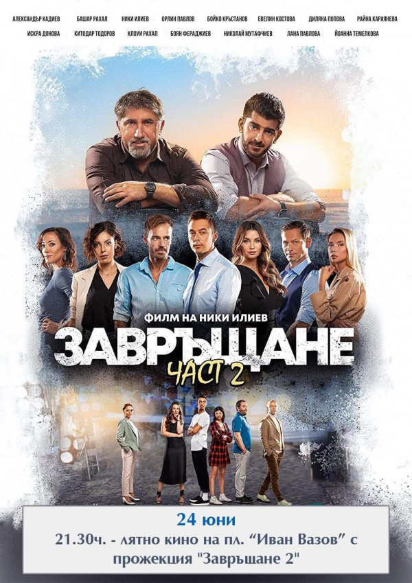 - 24 юни от 21.30 ч. – прожекция „Завръщане 2“, на пл. Иван Вазов“, в Костинброд;