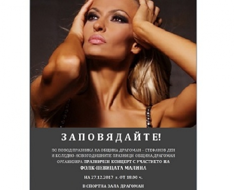 Фолк певицата Малина ще бъде гвоздеят в празничната програма по случай празника на община Драгоман-Стефановден и коледно-новогодишните чествания в града.